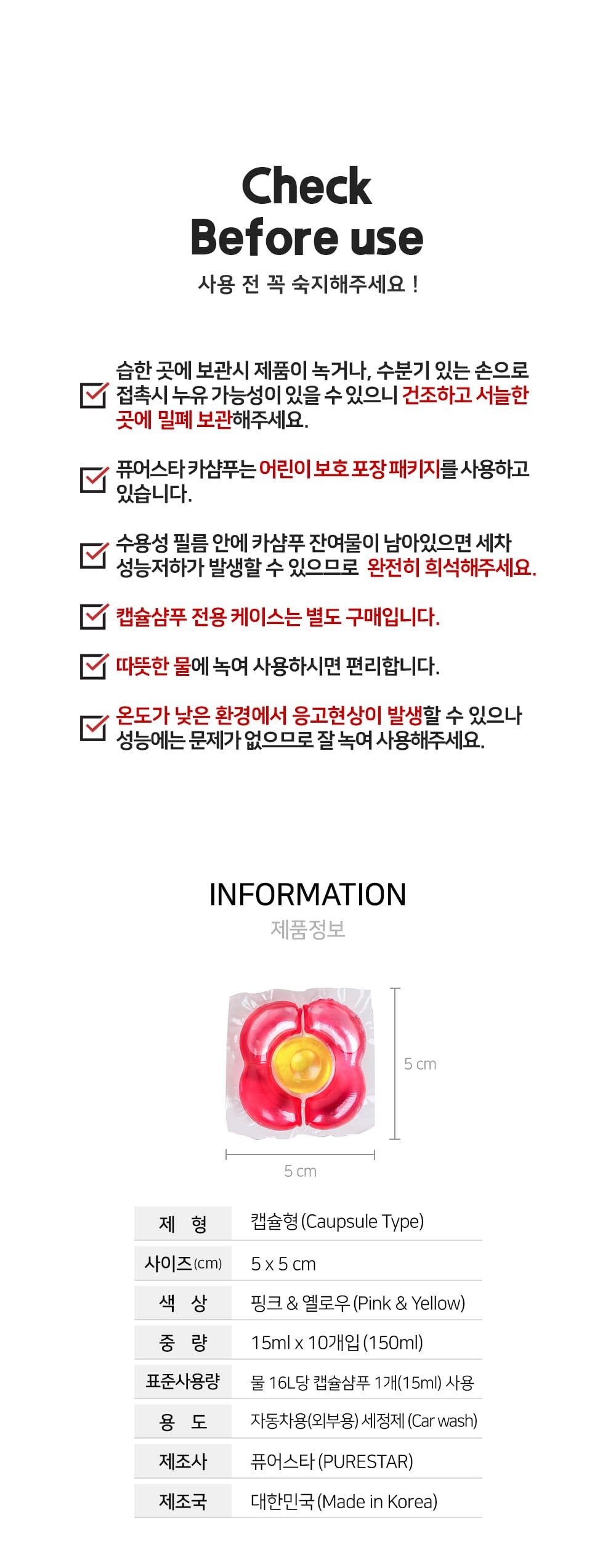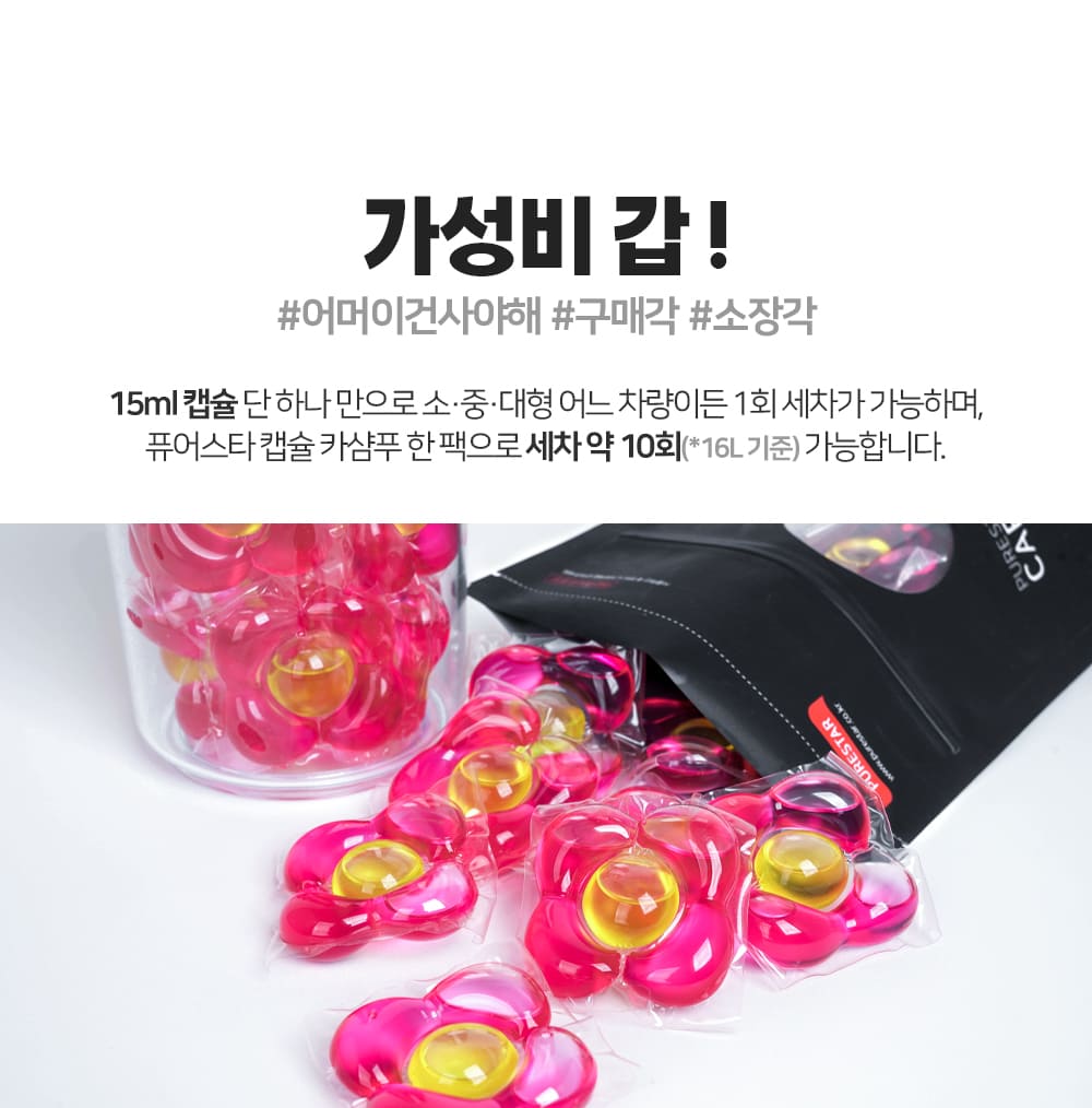 퓨어스타 플라워 캡슐 카샴푸 15ml 10개입 고농축 세차샴푸 캡슐형 자동차세정제
