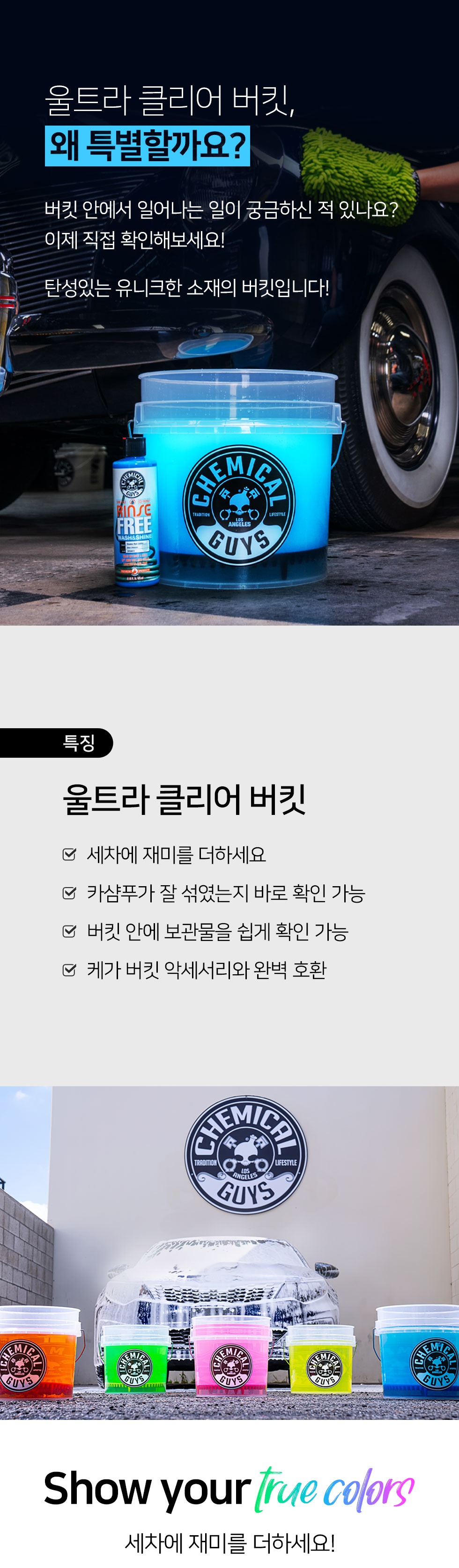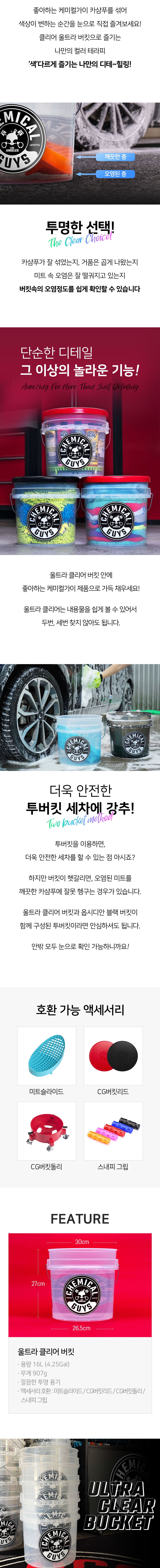투명하게 버킷 안쪽까지 보여 오염물을 확인할 수 있는 클리어 버킷