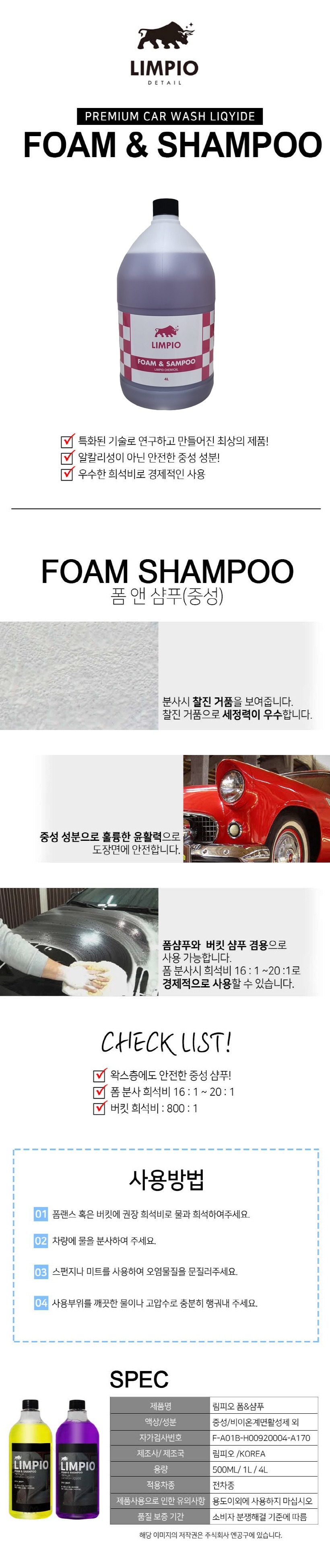 림피오 폼앤샴푸 폼샴푸 카샴푸 퍼플 4L