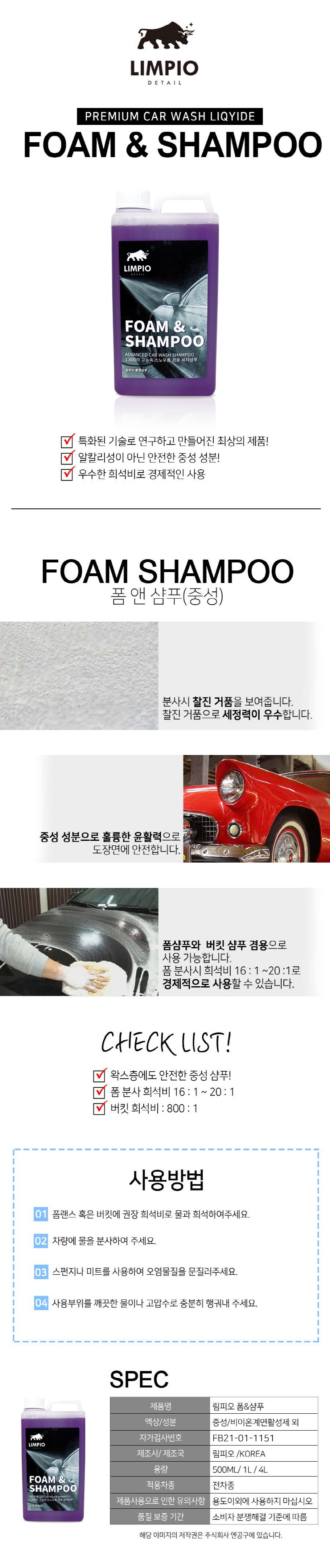림피오 폼앤샴푸 폼샴푸 카샴푸 퍼플 1L