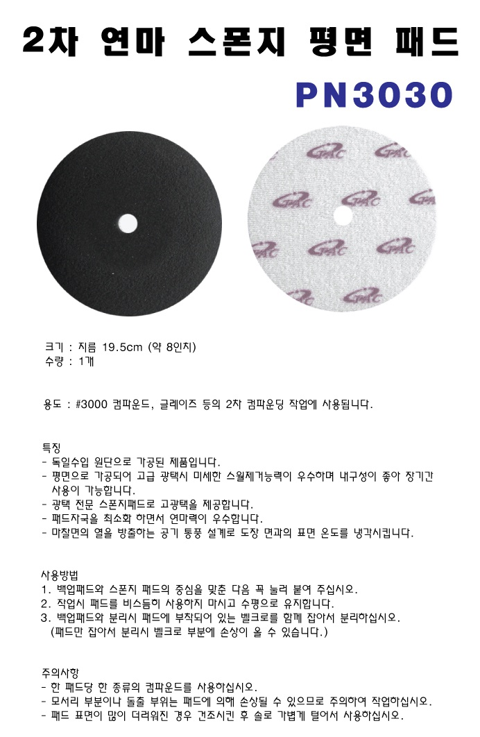 평면으로 가공되어 고급 광택시 미세한 스월 제거 능력이 우수하며 내구성이 좋아 장기간 사용이 가능합니다.