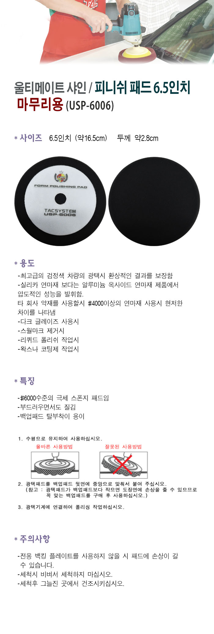 최고급의 검정색 차량의 광택시 환상적인 결과를 보장함,다크글레이즈 사용시 ,스월마크 제거시,왁스나 코팅제 작업시 ,리퀴드폴리쉬 작업시