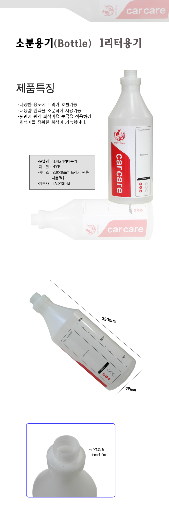 뒷면에 원액 희석비율 눈금을 적용하여 정확한 희석이 가능한 1L HDPE 희석 용기
