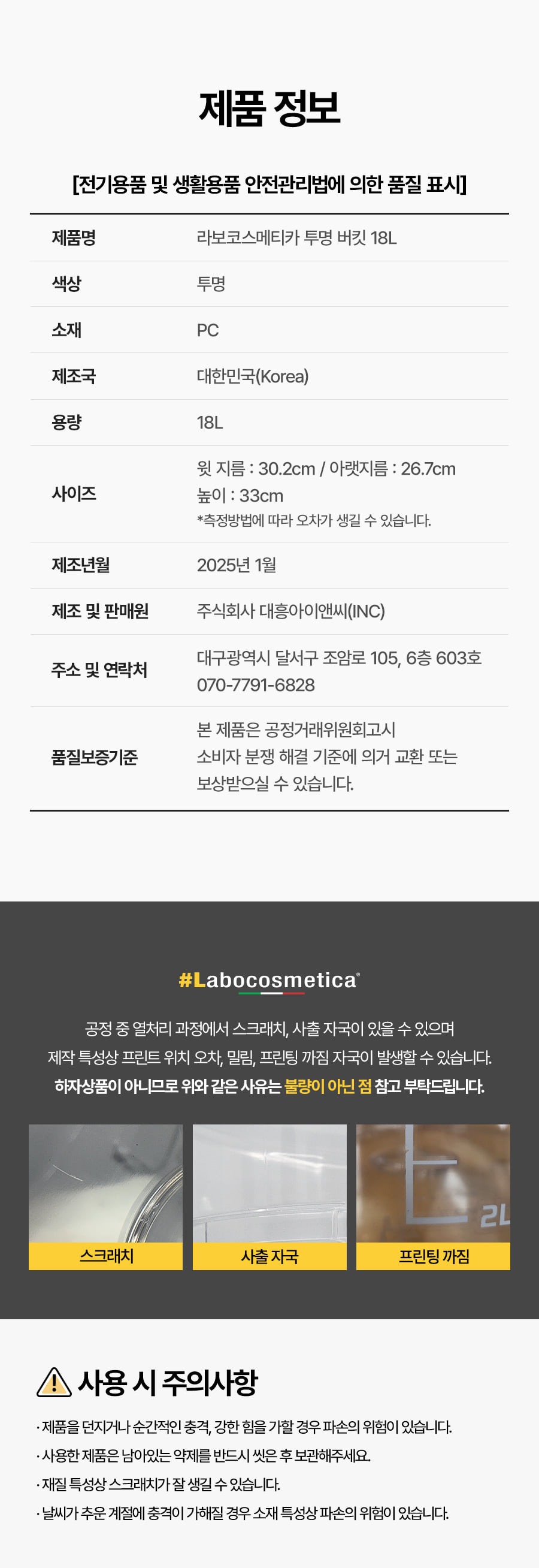 폴리카보네이트 소재의 튼튼한 투명 버킷