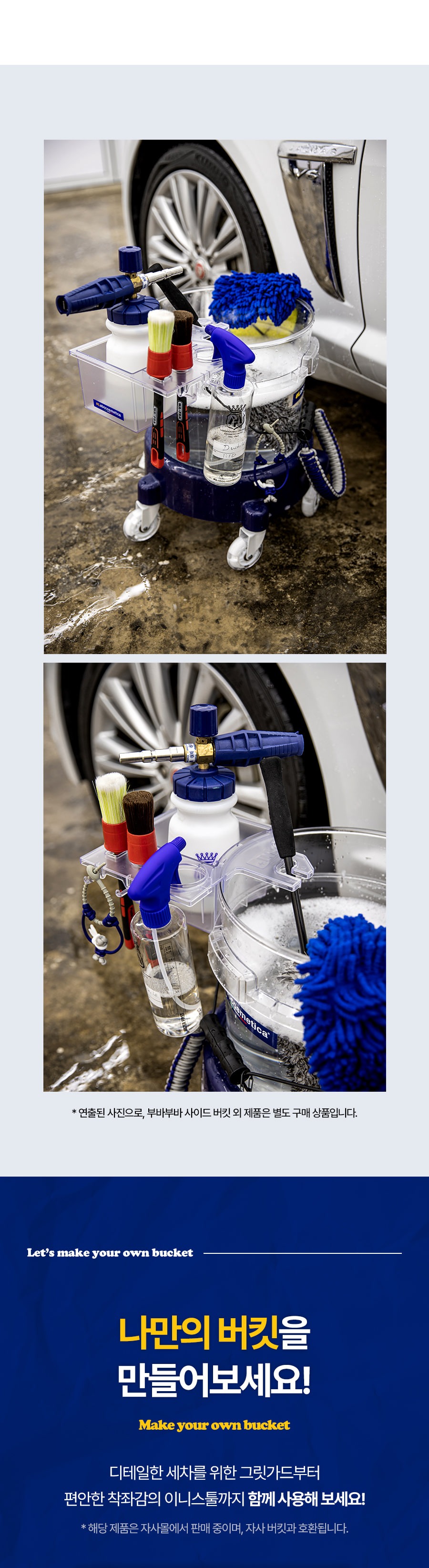 케미컬, 폼랜스, 브러쉬 등 다양한 세차도구를 버킷에 거치할 수 있도록 도와주는 사이드 버킷