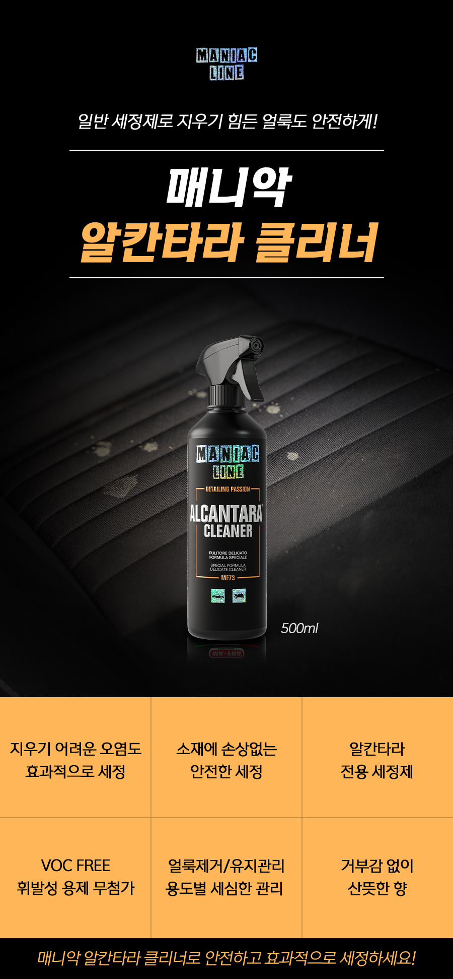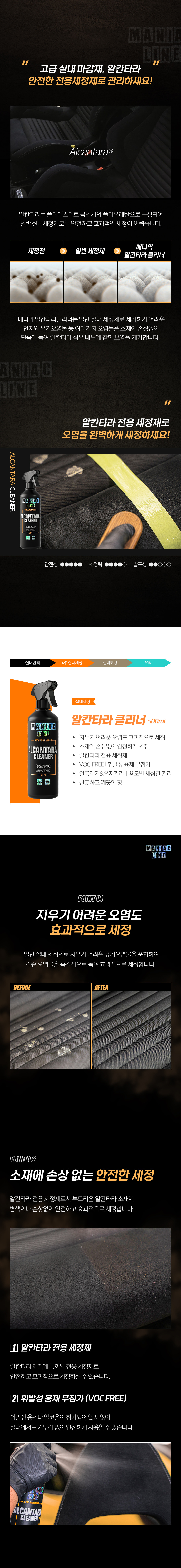 일반 세정제로 지우기 힘든 얼룩도 안전하게 세정 가능한 알칸타라 전용 세정제