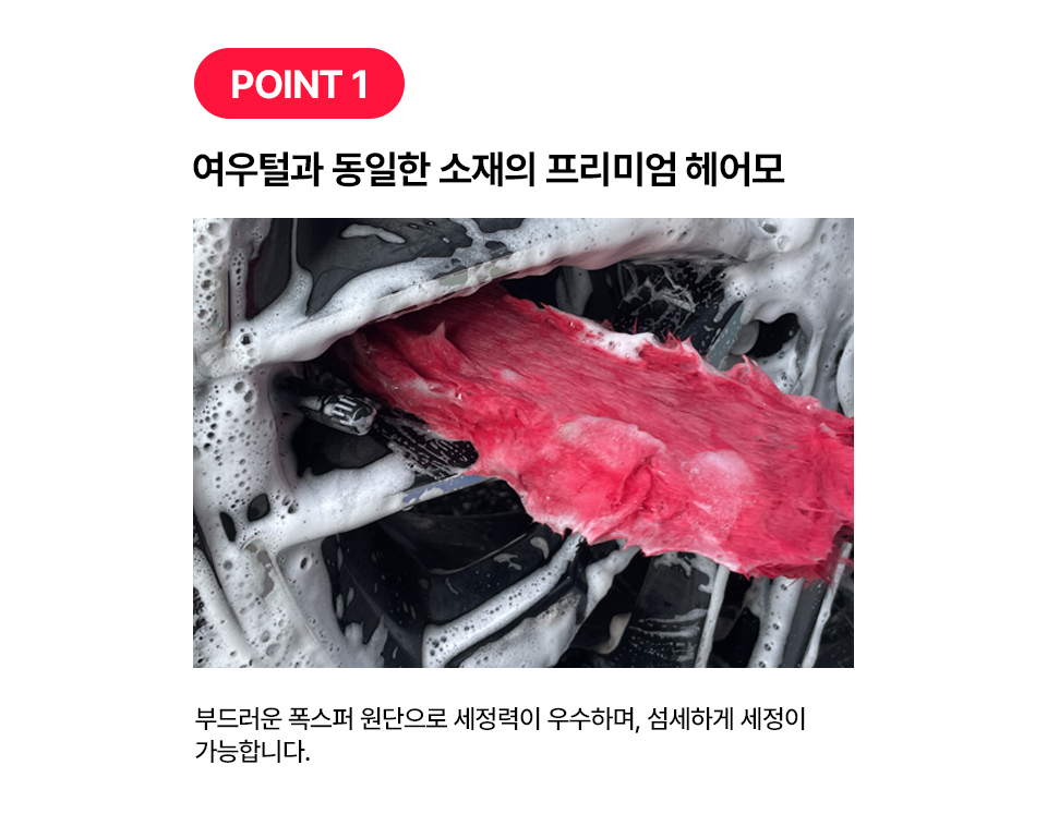 부드러운 폭스퍼와 유사한 헤어모 소재로 스크래치 없이 안전하게