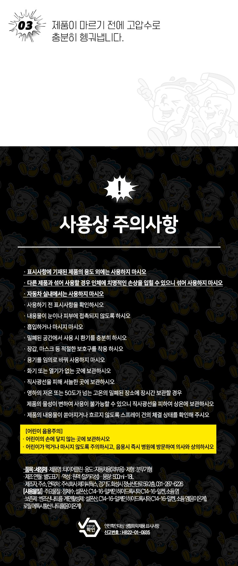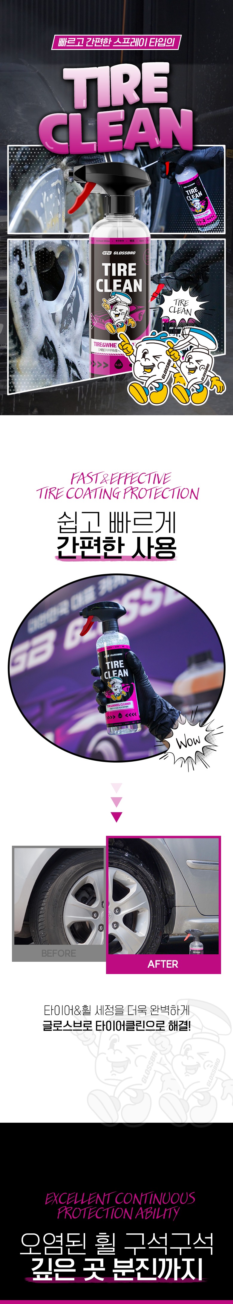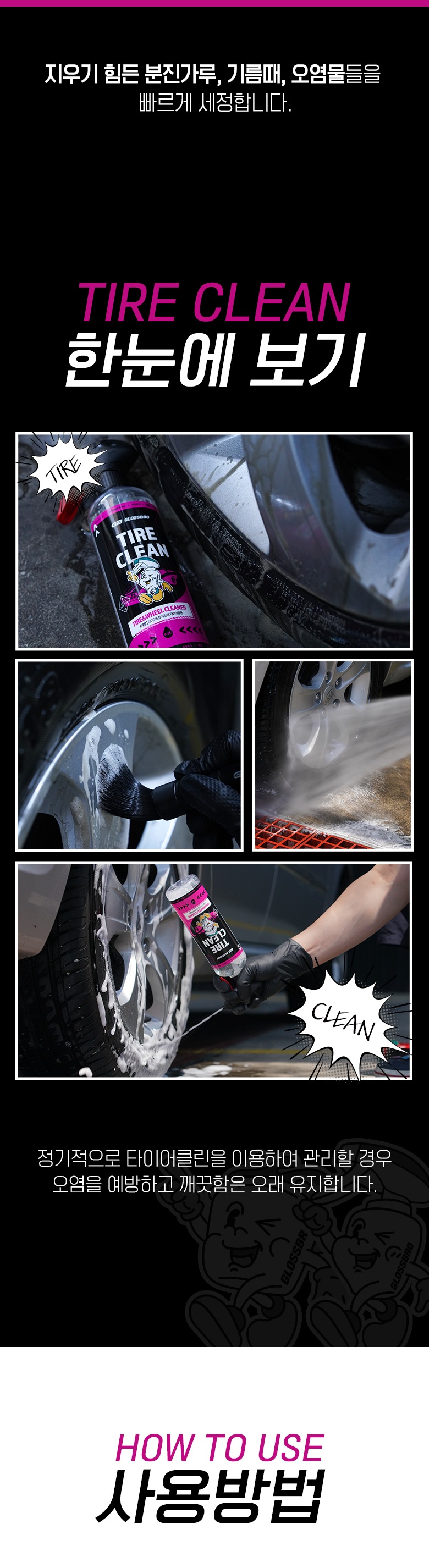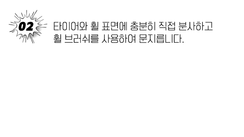타이어 갈변제거, 휠 분진 등 각종오염물 세정에 최적화