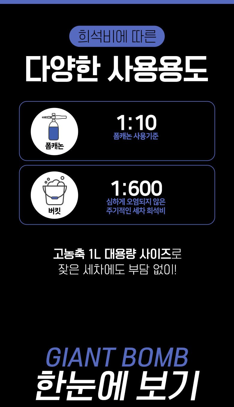 사이즈 UP! 경제성 UP! 1L 1:600 희석비 카샴푸 가죽표면 손상없는 세정 솔루션 NO 솔벤트