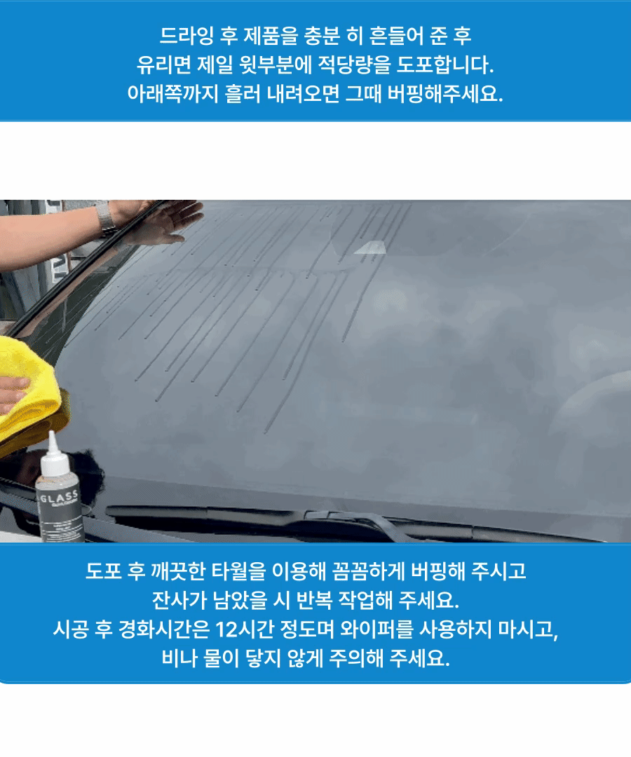 안전의 첫걸음 2번째 글라스 QD 유리 발수 코팅제 위에 관리제로 사용하여 지속성을 높여주는 제품