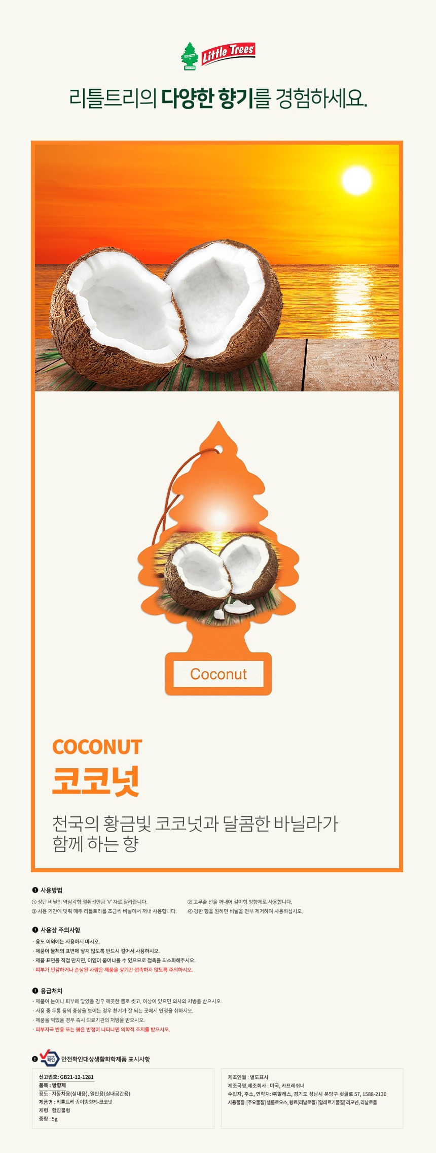 리틀트리 방향제 종이방향제 코코넛 1P 신차 선물 답례품