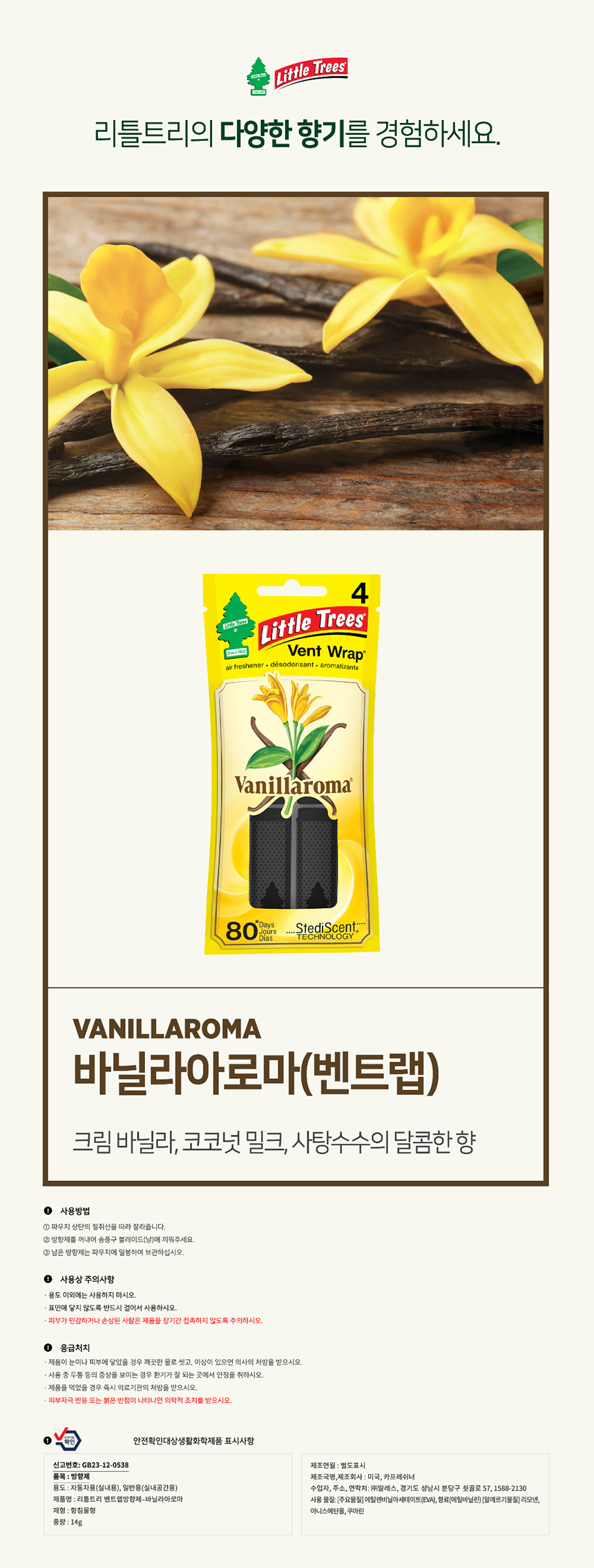 리틀트리 벤트 랩 방향제 바닐라 아로마 4P 신차 선물 답례품